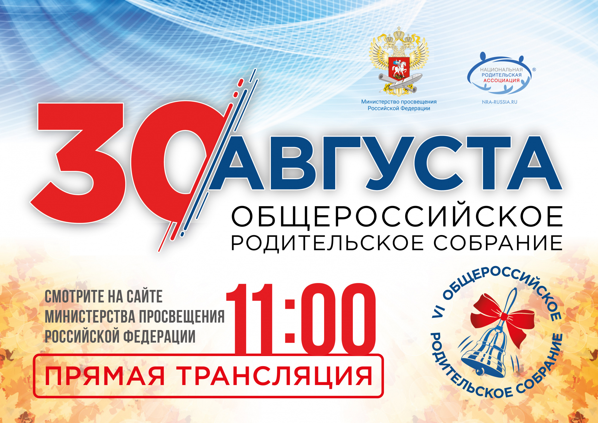 30.08.2019Сегодня в 11:00 по московскому времени начнётся прямая трансляция Общероссийского родительского собрания с Министром просвещения Российской Федерации О.Ю. Васильевой.
