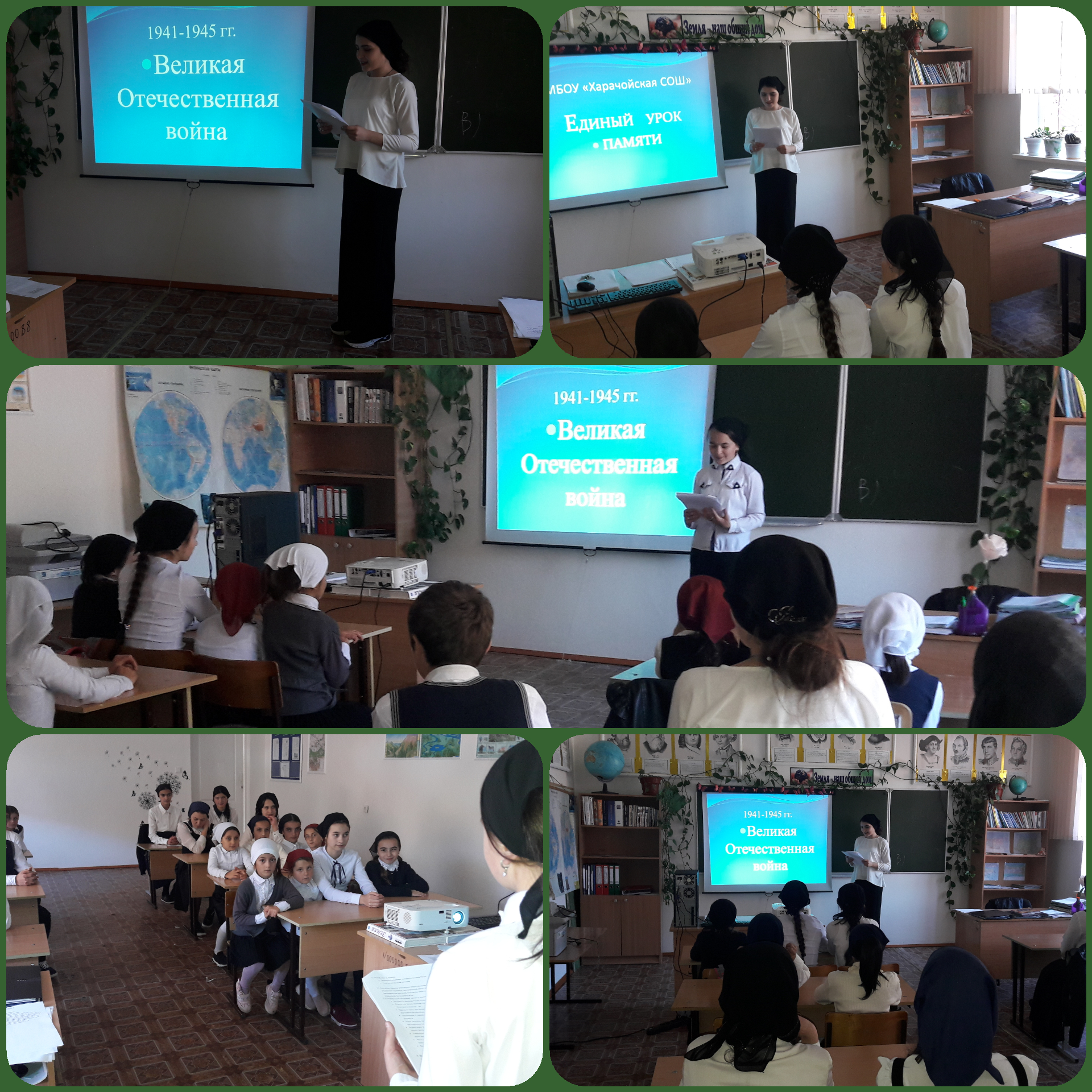 02.10.2019В сентябре октября в МБОУ "Харачойская СОШ" прошли уроки памяти, посвящённые 75-летия Победы в Великой Отечественной войне 1941-1945 годов. 2020 год в соответствии с Указом Президента РФ объявлен Годом памяти и славы. В рамках Единого урока в 1-9 классах прошли классные часы, викторины, уроки истории, подготовленные в соответствии с Методическими рекомендациями, разработанными ФГБОУ ВО «Российский государственный университет». Во время уроков ребята вспомнили имена героев. Вместе с классными руководителями пролистали летопись боевых сражений. Не оставило равнодушными ребят видео о войне, о блокаде Ленинграда. Учащиеся подготовили к уроку стихи и рисунки, которые раскрывают значение празднования Дня Победы, показывают, что Великая Отечественная война была войной освободительной, воспитывают чувство патриотизма, любви к своей Отчизне. Песни о войне во время урока способствовали созданию эмоциональной обстановки. Ребята узнали, что во время войны песня делила вместе с воинами горести и радости, подбадривала бойцов веселой шуткой, грустила вместе с ними о разлуке с родными.