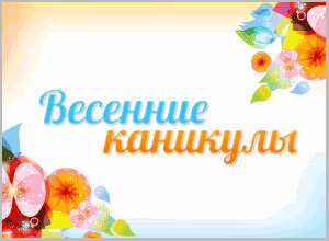 23.03.2016После затянувшихся зимних учебных дней каждому ребенку хочется поскорее уйти на весенние каникулы. Традиционная неделя весеннего отдыха начнется у школьников 23 марта, а закончится 31 марта 2016 года. Хорошего вам отдыха, дорогие ученики!!!