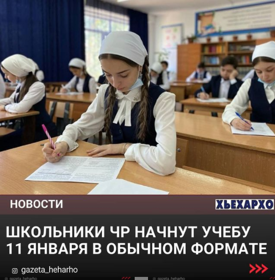 10.01.2021Каникулы для школьников Чеченской Республики завершатся в соответствии с графиком, занятия возобновятся с 11 января, сообщили в Минобрнауки ЧР. Занятия будут вестись, как и до зимних каникул, в обычном очном формате. При этом в школах необходимо также соблюдать санитарно-эпидемиологические правила, установленные Роспотребнадзором для образовательных учреждений в условиях распространения COVID-19.