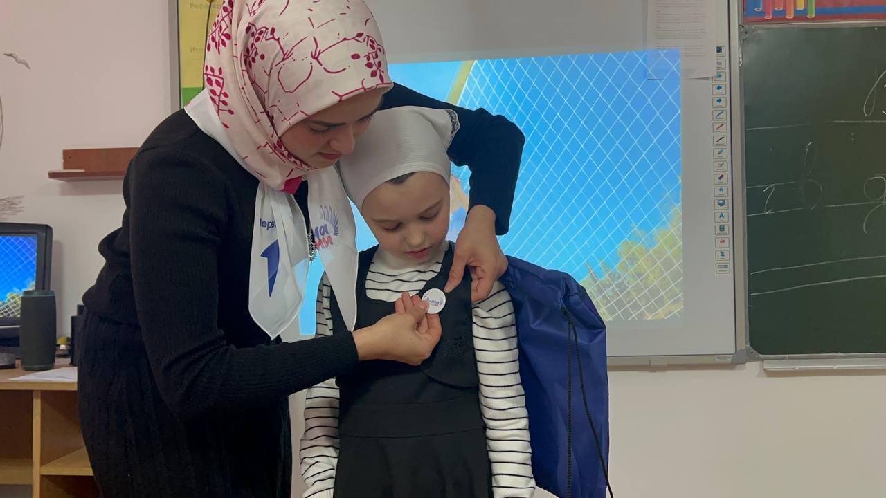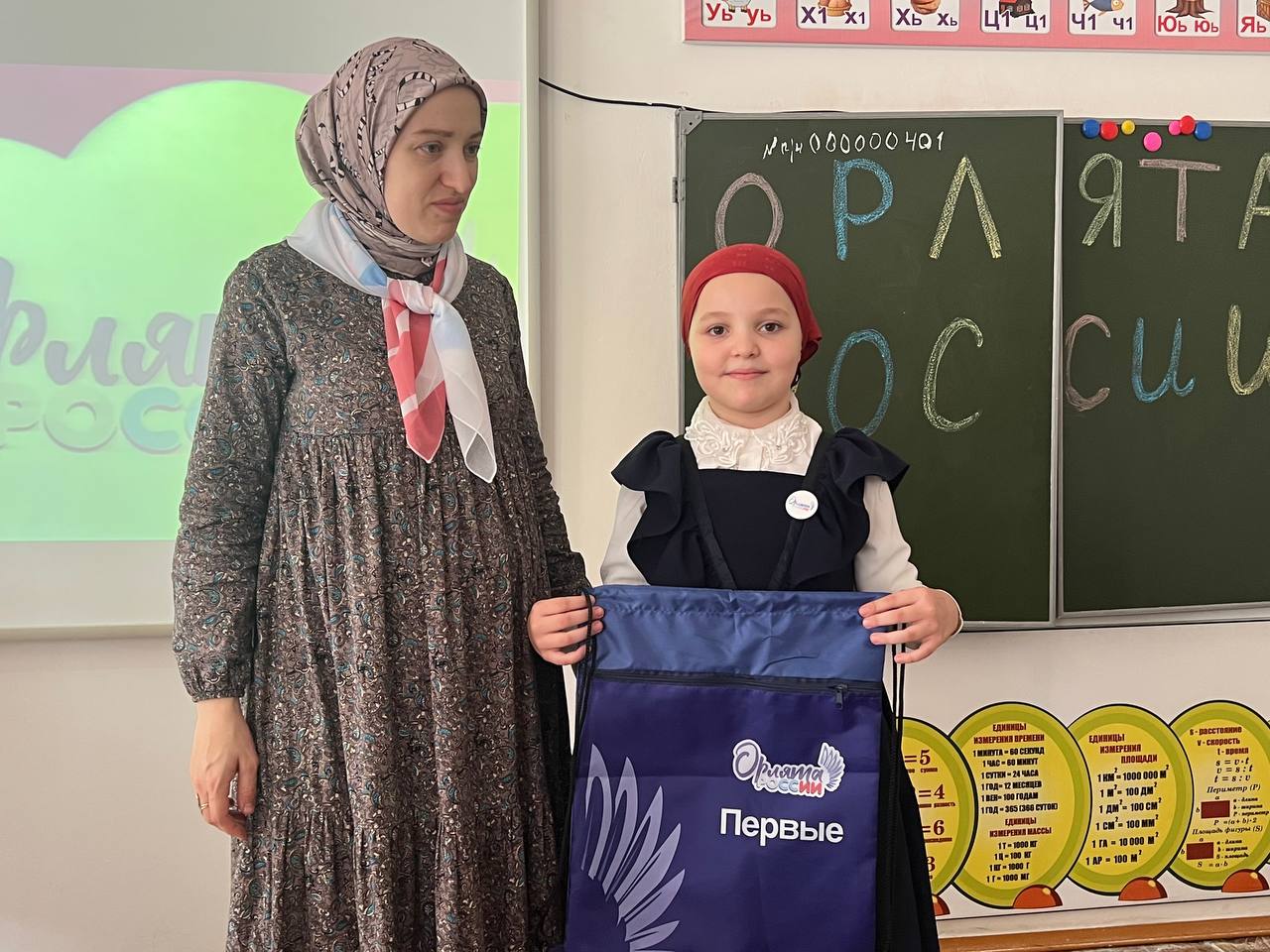 Наступил торжественный момент... Ребята дали торжественную клятву, а классные руководители Эсамерзаева Х.М. и Сулейманова З.А. прикрепили юным участникам движения значки-символы "Орлята России", как символ принадлежности к содружеству "Орлят".Теперь ребятам открыты двери в Страну Орлят, в которой их ждёт много нового, познавательного, интересного и полезного.