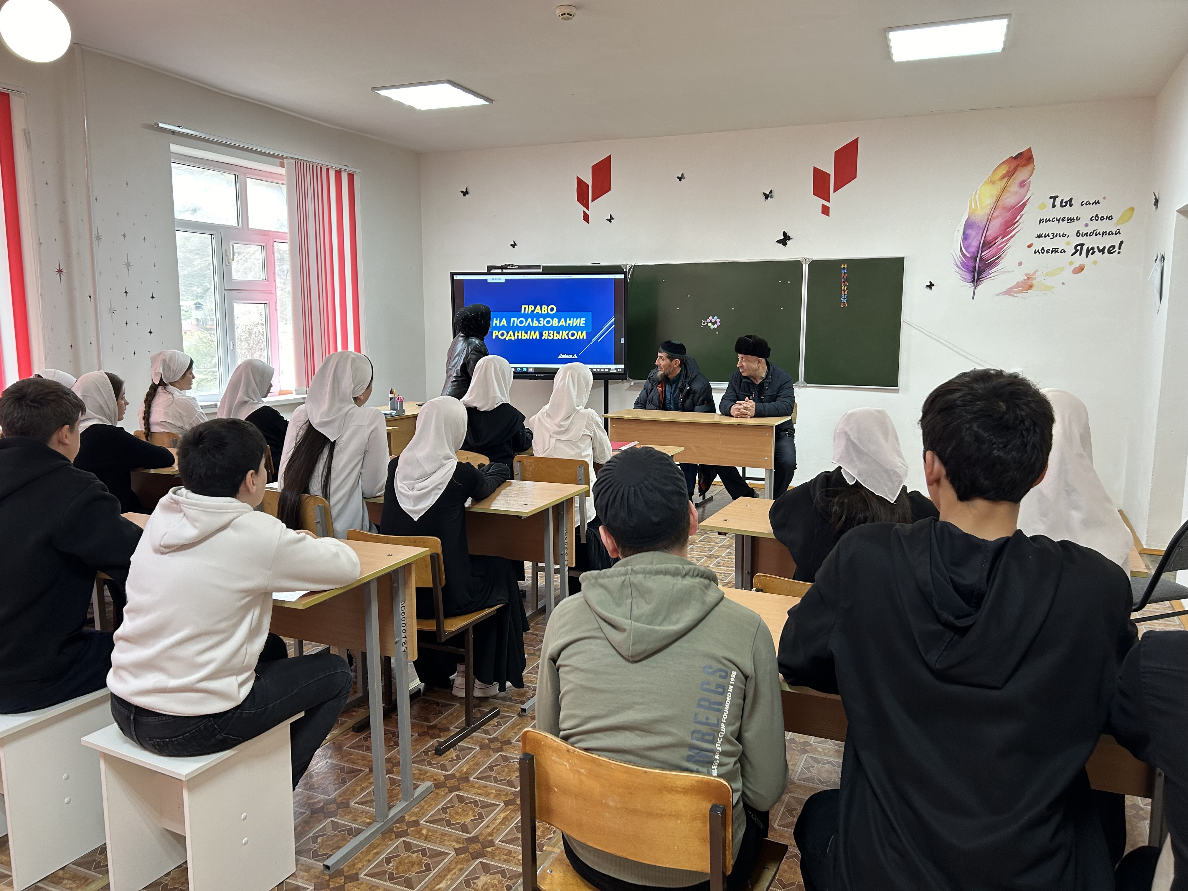 14 апреля 2025 в МБОУ «Харачойская СОШ» Хадашева Зара Дашалиевна провела урок правового просвещения с обучающимися (25 обучающихся) на тему: «Право на пользование родным языком».