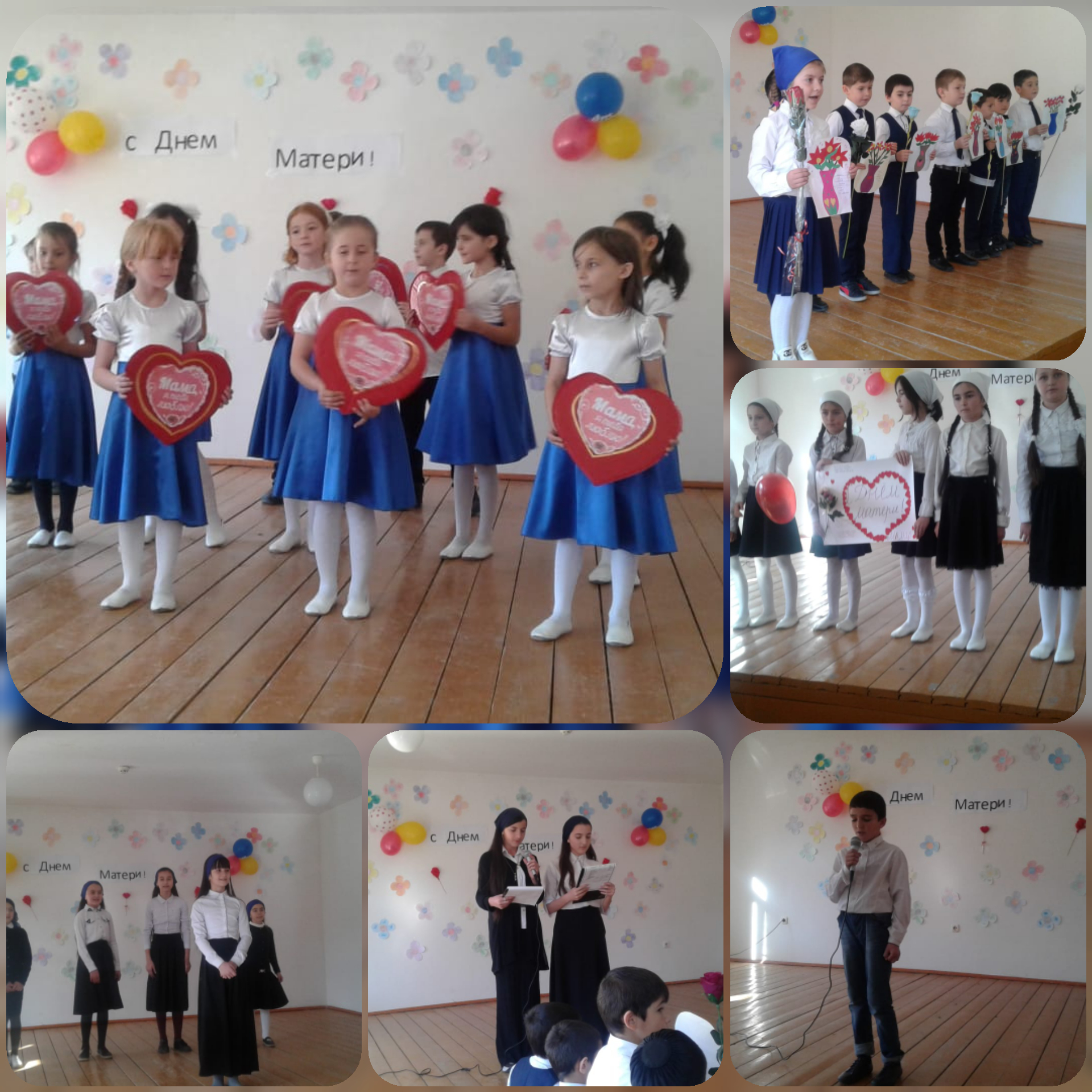 24.11.2018В целях воспитания у учащихся уважительного отношения к матери, почитания и соблюдения национальных обычаев и традиций в школе с 19 по 24 ноября 2018 года прошли мероприятия посвященные ко Дню Матери. Во всех классах прошли классные часы: «Хьоме Нана», «Матери Чечни», «Уважительное отношение к матери наш долг», «Чаепитие с мамой». В начальном звене организатор Муталипова Б.Р. провела утренник «Слово о моей маме». Каждый класс подготовил стихи, песни, сценки о матери. 26 ноября в актовом зале школы прошло общешкольное мероприятие «Я люблю тебя до слез…». Мероприятие подготовили и провели 9 класс вместе с классным руководителем Магамадовой З.Б. На мероприятие были приглашены мамы. В их адрес прозвучали стихи, песни, сценки.