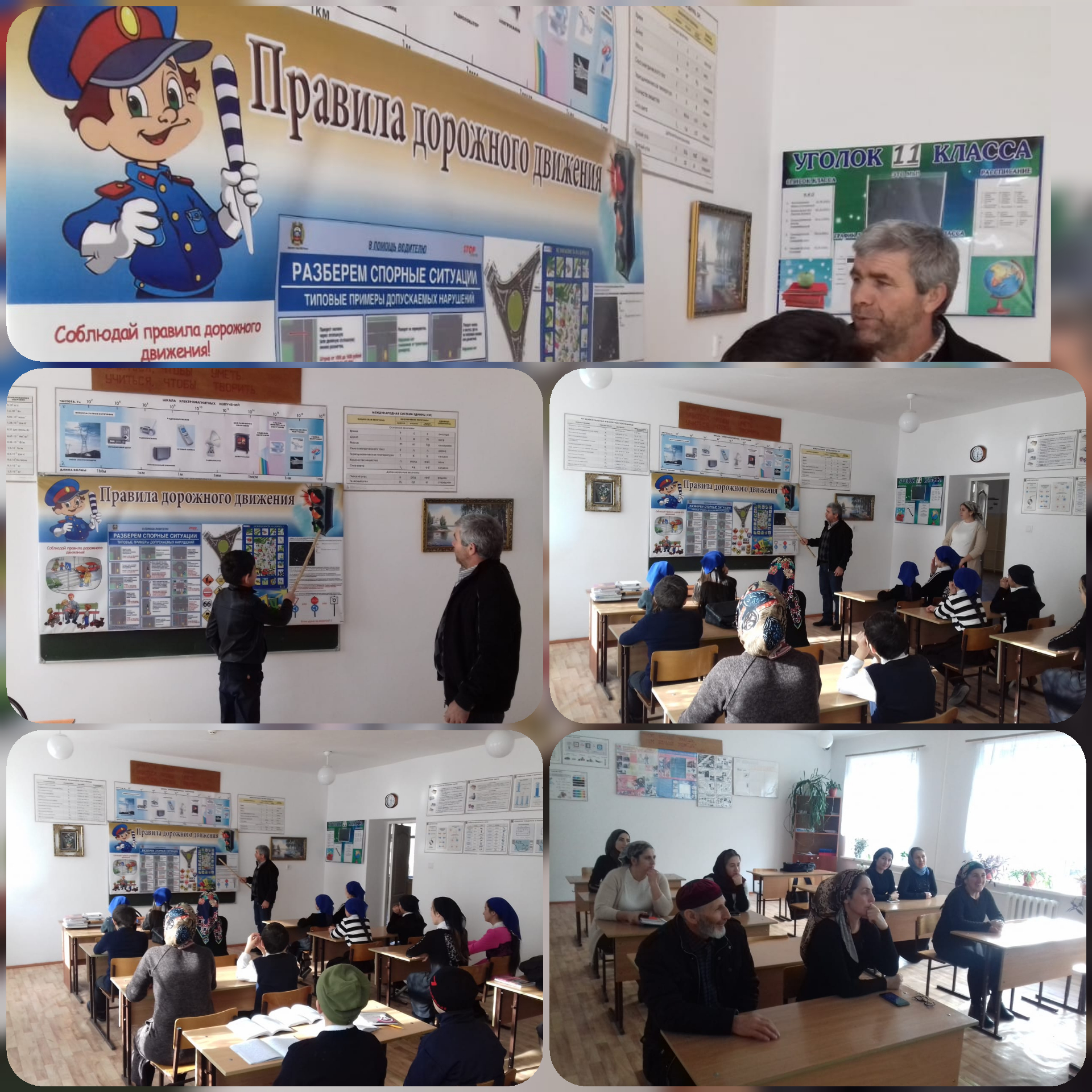В школе оформлены стенды, уголки по вопросам безопасного движения на улице. Малаевым Умаром Сайтемиевичем были проведены уроки-лекции на тему «Безопасность дорожного движения» с учащимися 5-11 классов. Также были проведены занятия с педагогами по повышению квалификации в области преподавания ПБДД.